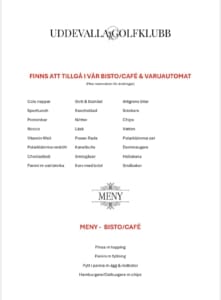 Vi har en Bistro Meny i vårt klubbhus som vi kan erbjuda våra besökare.