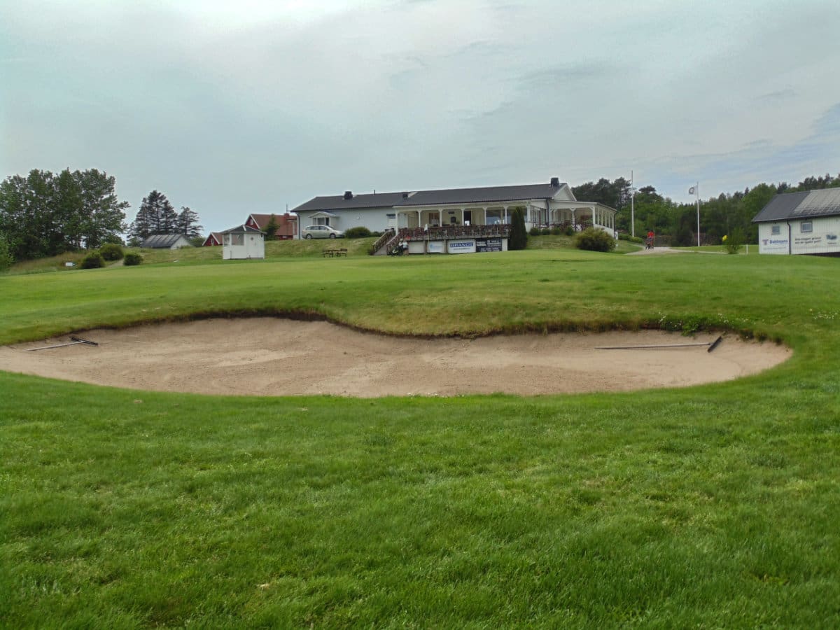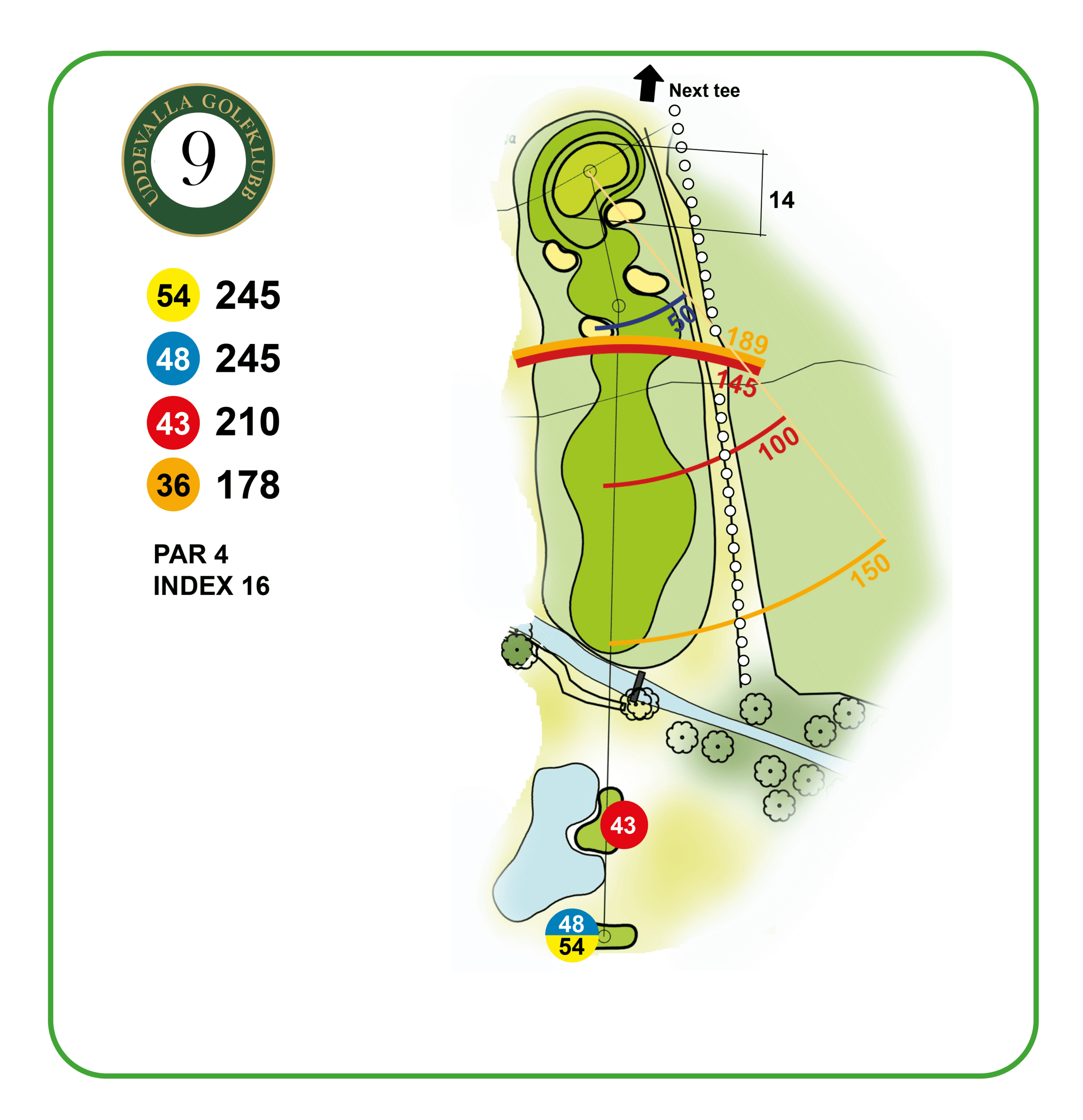 9. Vågar du försöka driva greenen? Slår du till vänster så ropa fore allt vad du orkar för det står troligtvis folk på ettans tee. Rangen till höger är out.